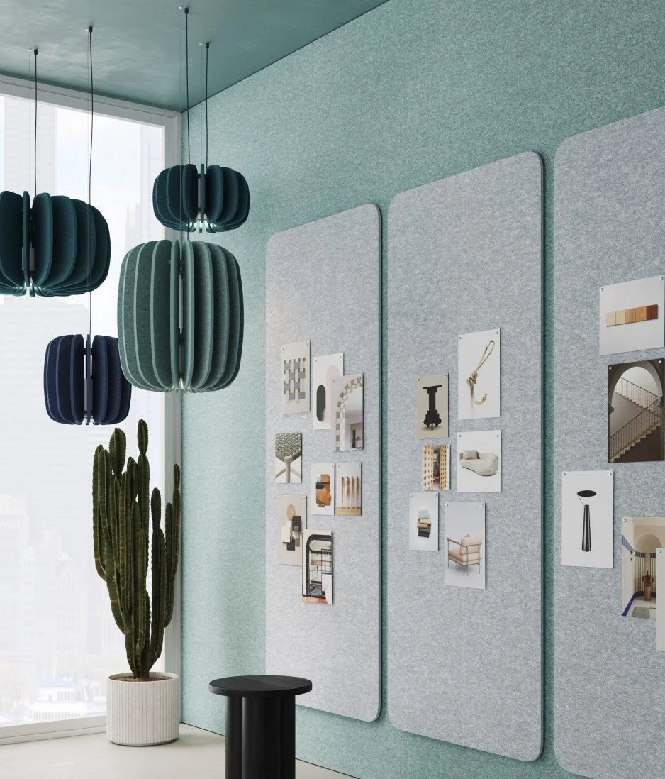 Les panneaux acoustiques décoratifs, disponibles dans de nombreuses formes et couleurs, s’intègrent parfaitement à la décoration.
