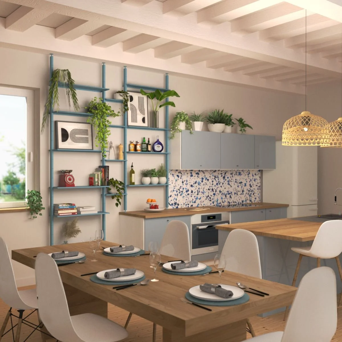 Investissez dans des meubles polyvalents, comme une table à rabat ou des tabourets qui se glissent sous un comptoir. Les îlots de cuisine avec rangement intégré peuvent servir de surface de travail supplémentaire tout en offrant des espaces de stockage additionnels.